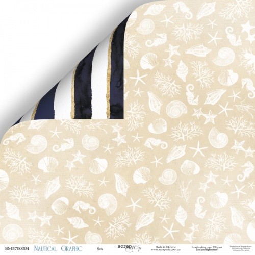 Двусторонний лист бумаги для скрапбукинга из коллекции Nautical Graphic от ТМ СкрапМир.